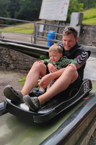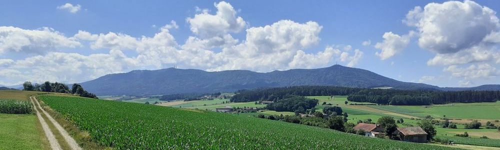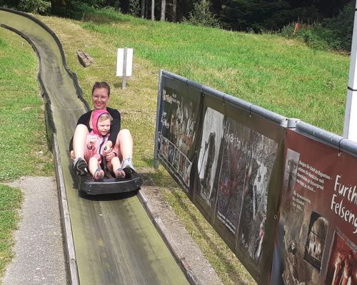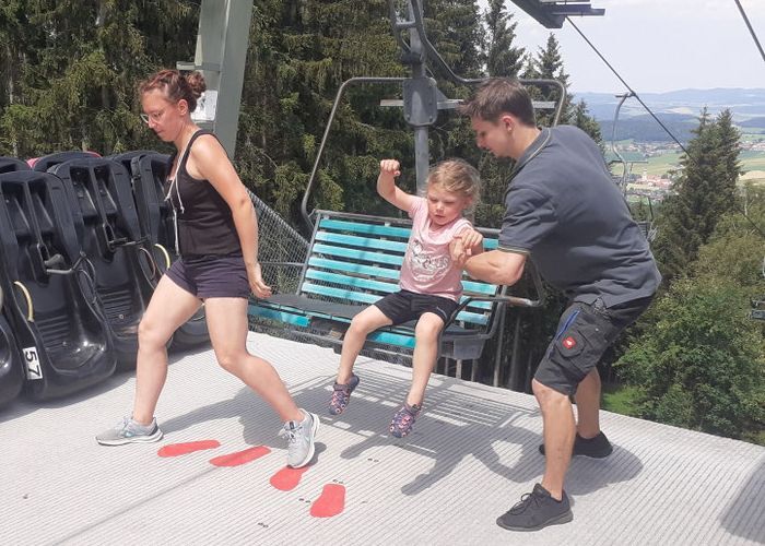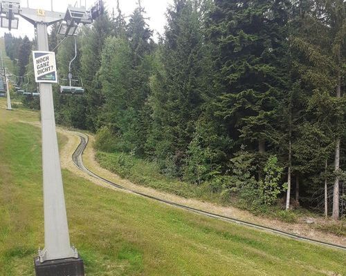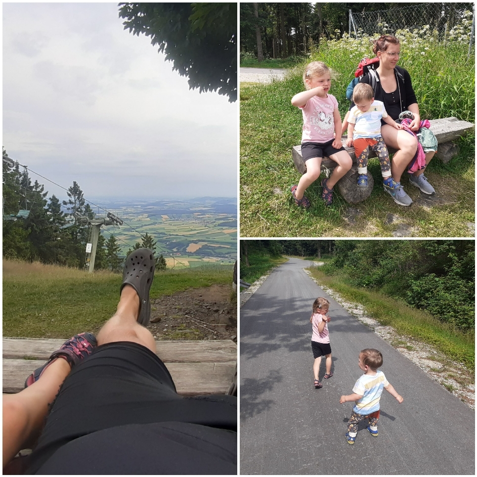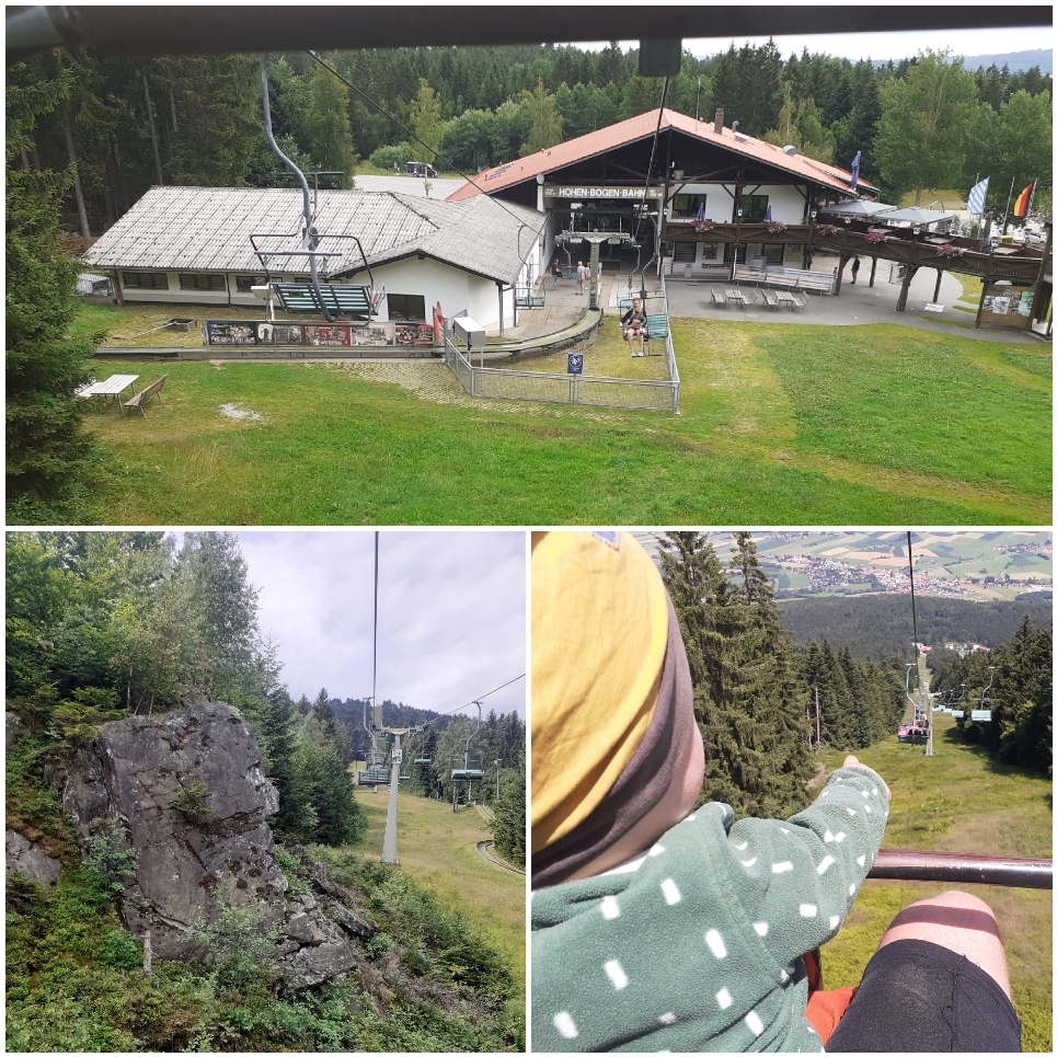 Heute sind wir bei wolkigem Wetter mit dem Rad Richtung Hohen Bogen gefahren. Der Hohen Bogen ist ein Gebirgszug, welcher 5 Gipfel ins sich trägt. Am Fuße von Neukirchen geht ein Sessellift nach oben, bei dem man auf halber Strecke mit der Sommerrodelbahn wieder runter rauschen kann. Oder man fährt halt bis ganz hoch ins Restaurant, zum Wandern oder Aussicht genießen.